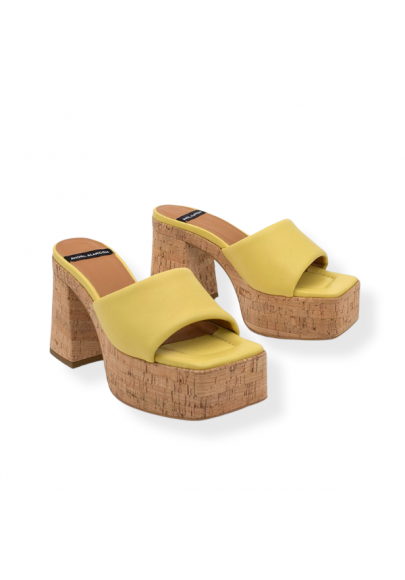 Zueco con tacón y plataforma forrada corcho Mahalia